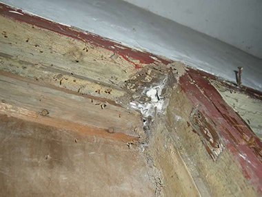 小区住户李女士对白蚁防治的陈师傅说,3月份,在清扫和整理房屋时,发现卧室房门下方总有一堆黄黄的粉末和泥土,不知道这到底是什么?通知自己的亲人后,亲人说有可能是白蚁,经过物业上门检查,发现都是白蚁,大量的白蚁不只把门框蛀空了,连门板和门上方的墙体也蛀空了。